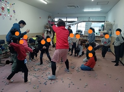 理由を知らされずに一部屋に集められ、少しソワソワしだす子ども達。